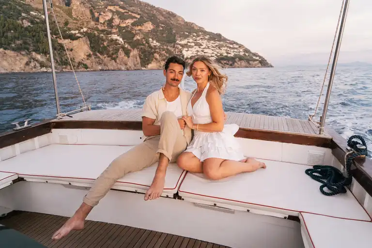 Couple photoshoot on boat in Amalfi Coast