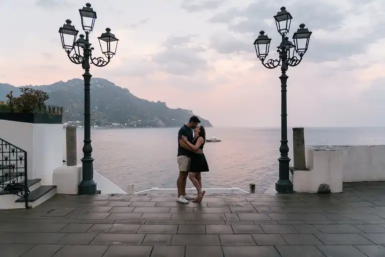 Atrani offers something rare. Privacy without effort. There are no crowds on the church steps. No constant foot traffic. No pressure to rush through the moment because someone is waiting to pass. For couples who want to keep the proposal intimate this is essential.
