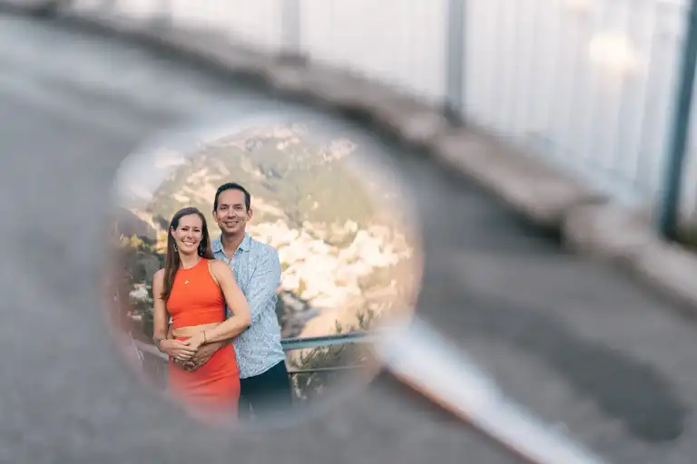 A Vespa adds a visual anchor that immediately communicates place, mood, and energy. It turns a regular photoshoot into a narrative. Instead of simply standing in front of a viewpoint, the couple becomes part of a story that feels dynamic and alive.
