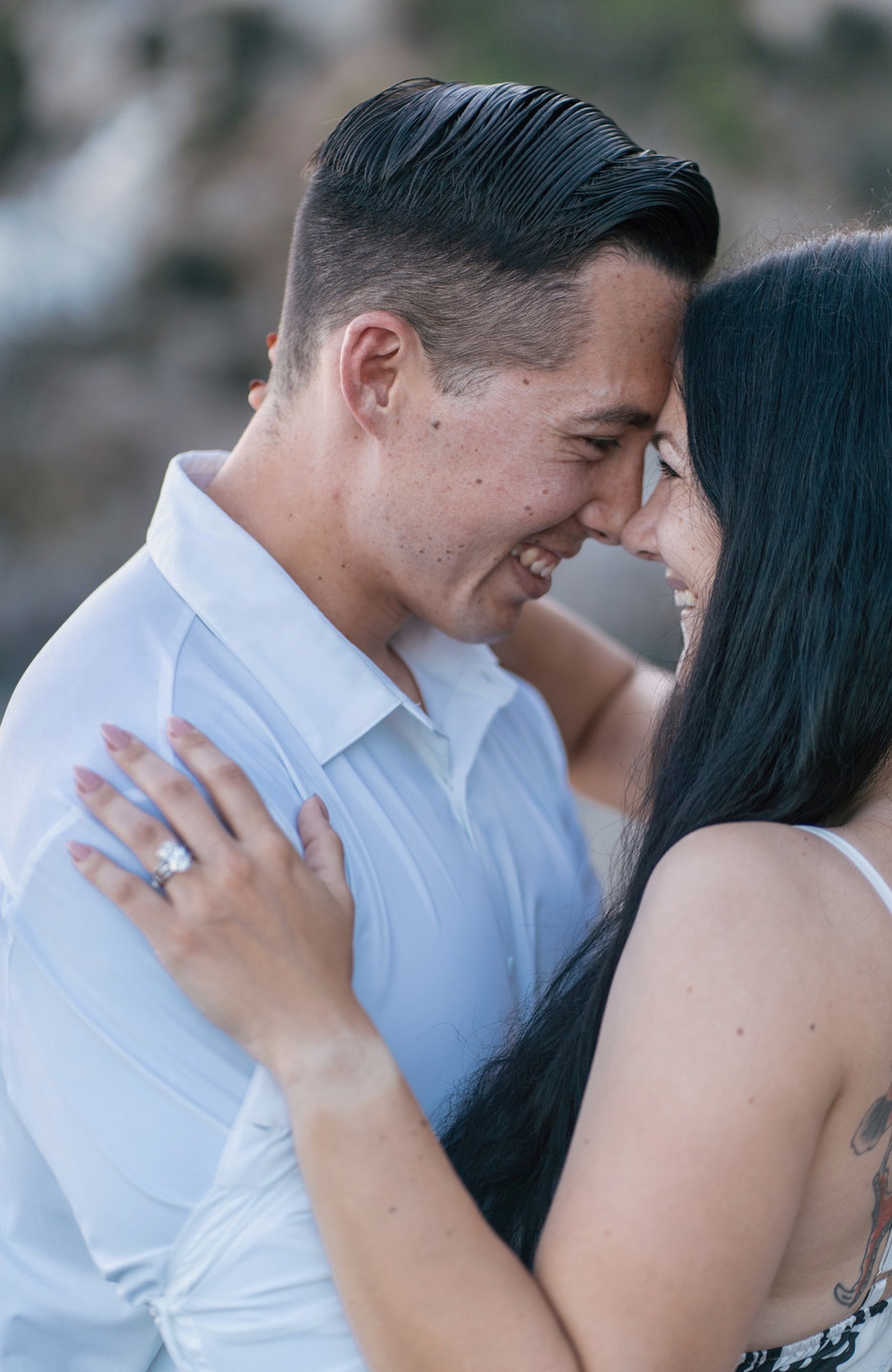 In this session, the proposal happened on a public deck area. With correct positioning and timing, the photos show only the couple, the sea, and the coastline. No distractions.
